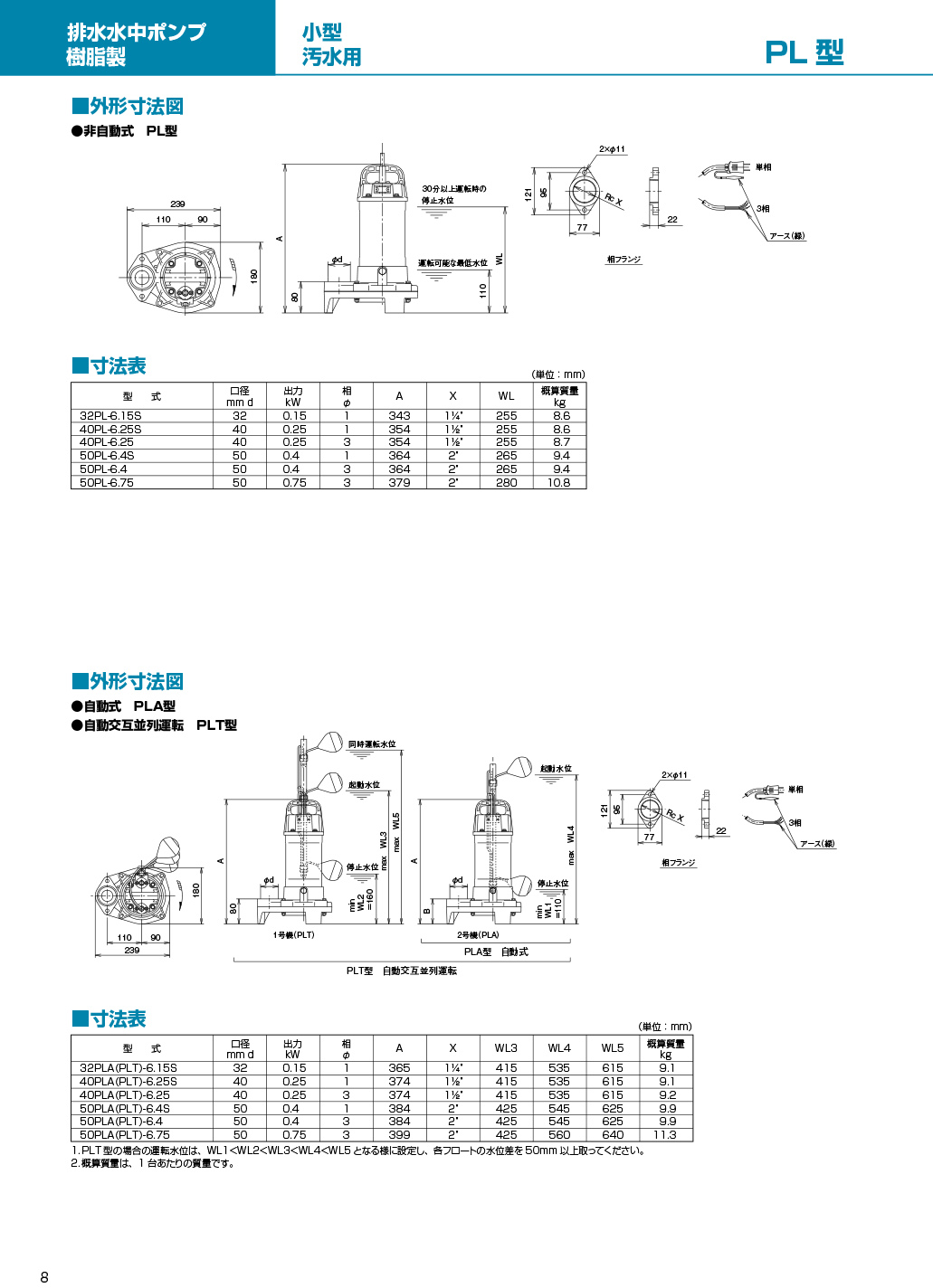 通过泵部、电动机部的树脂化、不锈钢化,实现小型、轻量。操作和安装容易。